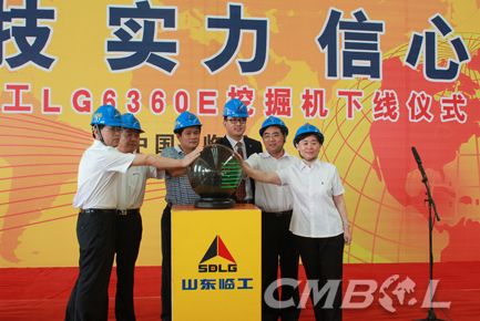 SDLG hold a grand ceremony today in its excavator workshop for celebrating its 36 tonne LG6360E hydraulic excavator rolling off the production line. Executive president of SDLG Yu Mengsheng, general manager of SDLG Wen Degang, senior advisor and Labour Union chairman Wang Yong, financial director of SDLG Zhang Hua, deputy secretary of CPC Committee of SDLG Zhou Weisheng, CFO of Volvo Construction Equipment (China) Pan Yunlong and representatives of SDLG’s dealers all over China attended the ceremony.